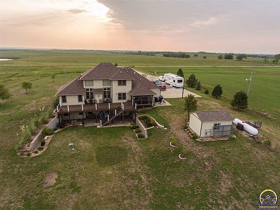 Spend Evenings enjoying Breathtaking Sunsets from this Home in an Amazing Location! 5.5 Acre property with pond to fish with the kids or relax on the dock. Home has updated kitchen with granite & stainless appliances. Living room has extra large windows that let in plenty of natural light. Heated floors in Bathroom. Walkout Basement with extra storage & a safe room. Outdoor living with screened in porch & expansive deck with hassle free Trex decking material. This is a very special Home in a great location!