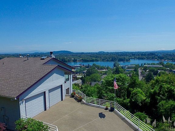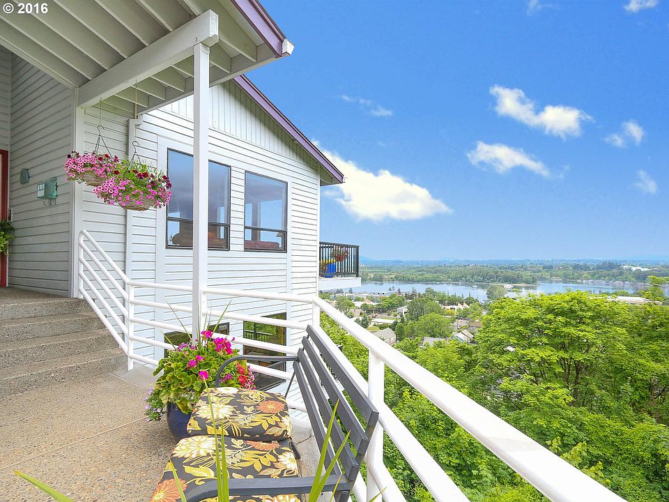 River, City, Mountain Panoramic View above the John's Landing neighborhood of Portland, Oregon.