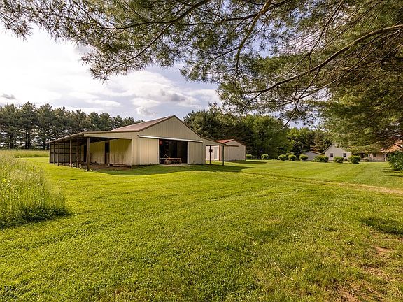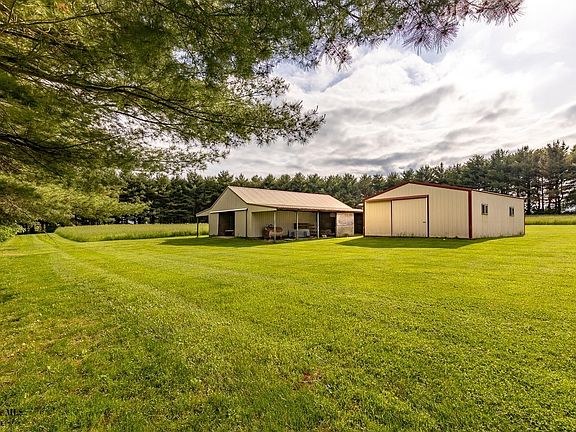 Country living at it's best. 5BD/3BA home offering living room w/vaulted ceilings, large eat in kitchen with newer stainless steel appliances, first floor master and first floor laundry. Covered front porch, rear patio that leads to inground pool. Large fenced area for dogs, 3 car attached and 2 car detached garages. Also, 24x30 & 24x48 buildings. Situated on just under 18 acres.