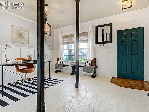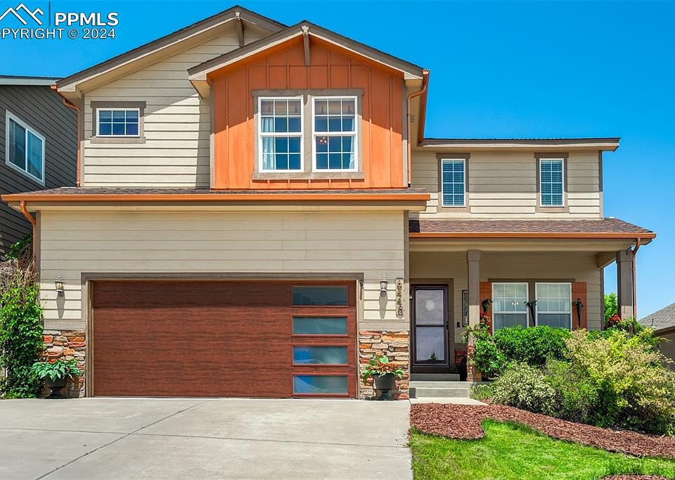A delightful front porch sets the stage and welcomes you home! Upon entering the home, you'll immediately notice the unique touches that help elevate the living experience. Abundant light flows in, and brightness appears throughout! Off the entry way is a versatile space that makes a great office, formal living or dining room, or anything you like! Enjoy an updated kitchen with granite counters, stainless steel appliances including a Bosch dishwasher, gold sink and accents, and a functional island with counter seating. A walk-in pantry and plenty of storage space, including a built in buffet, complete the space perfectly! The open floor plan leads to the family room which is bright and cheery, and includes a decorative fire box! Entertaining is a breeze as the kitchen opens to the back yard and there is fantastic space for all! The large, private backyard has multiple outdoor sitting areas that is ideal for entertaining and enjoying the Colorado lifestyle year round! Beautiful mature trees and turf in the backyard mean you can enjoy relaxing in your yard, instead of working in it! There is a space that is perfect for a dog run too! The upper level has a fabulous Versatile loft and lots of windows. The Primary Suite is your oasis to relax and recharge in a spacious suite with a large walk-in closet and a 5 piece bathroom complete with double vanity and soaking tub. Three additional bedrooms are on the upper level, two with walk-in closets, along with the laundry room for convenience. A spacious unfinished basement is the same footprint of the home, and offers many options for use and finishes. It is even pre-plumbed and there is room for bedrooms, rec room, and more! This wonderful home is located near the Powers Corridor with convenient access to shopping, restaurants, entertainment, healthcare and multiple military bases. Additionally, Woodmen Rd and St Francis Hospital are minutes away too! This unique home may be just what you are looking for!