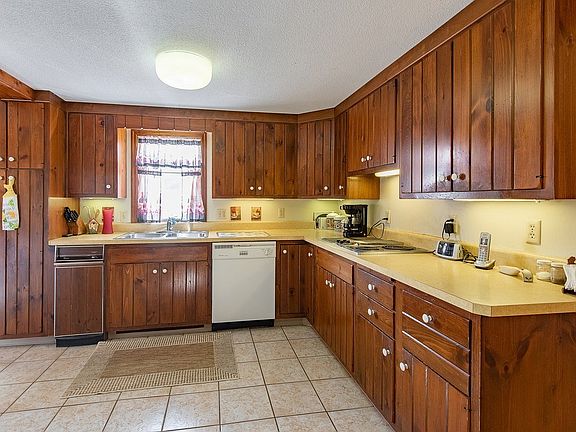 Spacious Lake Gage home on the northeast side of the lake. The property owns to the waters edge and the sandy beach is exceptional! This year round home has 4 bedrooms and 2 full bathrooms. The kitchen has a built in breakfast table. All kitchen appliances plus the washer and dryer are included. A freestanding wood burning stove heats up a chilly night. From the living room there are French doors to a den. Plenty of room to entertain with a lakeside sun-room and a separate lakeside enclosed porch, both with French doors. There is a main level master bedroom with walk-in closet. Upstairs you'll find three large bedrooms and a full bathroom with double vanities. The basement is unfinished with a large storage room and a separate utility room. Two super sized detached garages allows plenty of storage for water toys and a workshop. There are poles and hardware for the dock in the garage and the dock top needs some TLC. The enclosed porch is not included in the square footage. Go to https://youtu.be/rhOrPCRf_iM to see more of the exterior property.