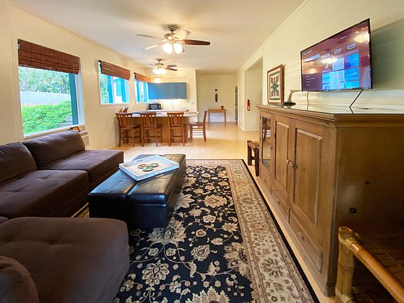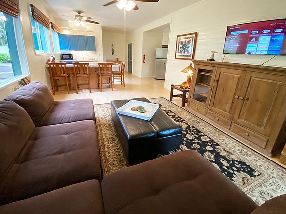 PLUMERIA SUITE apartment: We offer stylish FULLY FURNISHED apartments on Kauai that have open plan kitchen, intimate dining, en-suite bathroom, and living room that opens to a spacious deck or balcony. We are located 10 to 15 minutes inland of Kapaa one of the busier small towns in Kauai, with beautiful beaches, restaurants, supermarkets, and other shopping just a short drive away. There are also a couple of hiking trails within walking distance that allow you to walk right into the rainforest. Our location is quiet and beautiful. We are located in Wailua Homesteads. Perfect as a starter apartment if you're moving to Kauai offered for a lease of 6 months, or as a long term rental for 12 months and longer. Retired couples moving to Kauai, and traveling nurses & doctors welcome. PS: without Matterport KAUAI - Absolutely Gorgeous 1 Bed / 1 Bath Wailua Apartment - *Amazing Location on the edge of Kauai's Tropical Rain Forest. Shared garden areas with orange and starfruit trees. Property owners occupy separate house on the 2 acre lot. See our DIGITAL TOUR: Website: PLUMERIA SUITE - 1,200 sf of living space: * Kitchen & living room, bathroom, and 1 bedroom with CA king bed. * California king bed with comfortable memory foam mattress! * Bathroom with Jacuzzi tub * Spacious Lanai/Deck, perfect for your morning yoga! * Fully furnished...all you have to do is move in! * Air-Conditioned. * Washer/dryer onsite. Located right in the heart of Kauai, short 10 mins drive to shops, restaurants and beaches. 2,300/mo + $195 utilities (electric, water, internet, and cable TV) Available for 6 or 12 months lease 6 months lease: $2,400/mo + Utilities 12 months lease: $2,300/mo + Utilities Security Deposit: $1,500 No pets please! Available June 1, 2021 Tenant responsible for $195 utilities (electric, gas, water, cable TV, and super fast wifi internet), payable to the landlord. Landlord pays trash removal.