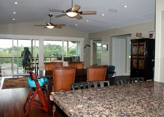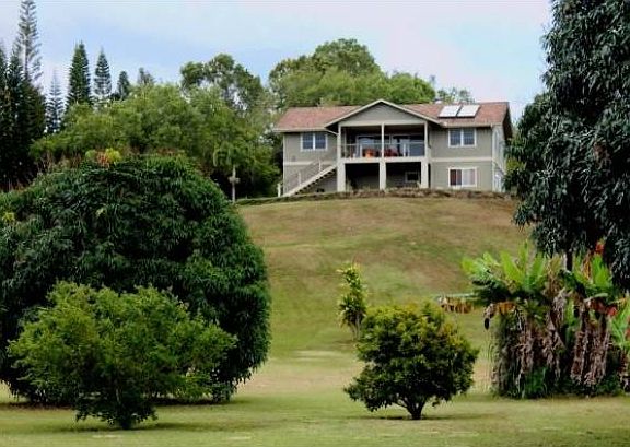 An Elegant Homesteads Country Estate! This newer Executive style home is situated at the top of its own hill on 1.13 acres. This is the perfect property for the discerning Buyer who wants it all. Privacy, high-end finishes, views and room for everyone. This rural neighborhood is sought out because of its peace and quiet and charm.<br>Situated upstairs to capitalize on the expansive pasture and mountain views is the main living space with two bedrooms and an office. In the large great room, recessed lighting from high ceilings bounces off the polished hardwood floors. Music streams from the built in speakers throughout. The great room freely flows into a large lanai, dining area and spacious kitchen. You are first drawn to the tropical pastoral views from a 200 Sq. Ft. covered lanai. The steel railing, recessed lighting, ceiling fan and speaker system promote to captivate you and your guests in comfort and style.<br>The first glance of this well planned kitchen impresses with it's high ceilings, windows and sparkling granite counter top. The stainless steel appliances, gas stove and huge center island add to the warmth and invite you in.<br>This home features an abundance of high end finishes throughout; Ipe hardwood floors, ceramic and granite tile and generous built-ins. <br>Over-sized dual pane double hung windows and sliders showcase mystical Sleeping Giant mountain and the nearby meadows and hills. A full functioning office was designed for comfort with views, hardwood floors, and a built in desk with cabinets. The master bedroom has an abundance of windows with sunrise views, bath with jetted tub & separate shower, and a walk-in closet. The entire house is serviced by a solar water heater.<br>Downstairs, there is a 500 Sq. Ft. space with 2 more rooms, a full bath, washer and dryer, and bar sink. This is a private feeling space with it's own large lanai and two entrances. Don't miss the over sized 1100 Sq Ft 2 car garage plus car port. A must see!