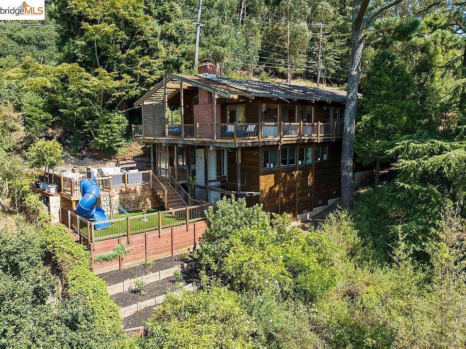 Designed for entertaining & to accentuate the sweeping Bay views, this stunning Mid-Century Modern home epitomizes California indoor-outdoor living. The open flow living & dining rooms have dramatic high vaulted ceilings & are surrounded by floor to ceiling windows & a wrap-around deck. The chef’s kitchen was remodeled with high-end appliances, cabinetry & opens to a spacious family room overlooking the verdant garden. Downstairs are 3 large bedrooms with views, 2 bathrooms, a laundry room & plenty of storage. The primary suite includes a fireplace, walk-in closet & beautifully updated ensuite bathroom. There’s also an office with built-in desk & a bonus room that can be used as a rumpus room, guest room, another office, or an oversized pantry. Outside, the yard provides more incredible spaces for enjoying the views with a huge deck for dining al fresco, built-in bench seating, a vegetable garden & a dreamy play structure that includes a spiral slide, climbing wall, swing & grassy play area. Across the street is Joaquin Miller Park with miles of hiking, biking & horseback trails. Around the corner are Roberts Regional Park and Chabot Space Center among many other East Bay treasures. All this within minutes of Montclair shops, schools & countless other amenities. 6441Castle.com