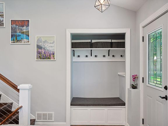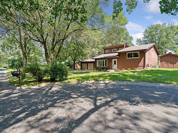 UNIQUE, PRIVATE LOCATION - SHOWCASE HOME on a BEAUTIFUL LOT. Private, tree-lined street leads to the quiet cul-de-sac, a .45 acre lot with mature trees, and open green space with huge backyard! Not your typical split; home has been transformed into a modern, bright and airy interior that captures the beauty of the outdoors with new windows for an abundance of natural light throughout. Vaulted main & upper level lends to the open floor plan, enjoy a main floor living room and lower level family room, basement recreation/flex room, and spacious eat-in kitchen with walkout. Upper level primary ensuite features a walk-in closet with organizer and a sleek renovated 3/4 tile bath with walk-in glass shower, a secondary bedroom and a renovated full bath. Lower level offers a cozy corner wood burning fireplace and built-in wet bar in the family room, 3rd bedroom, 3/4 bath with pine T&G, and a laundry room. You'll love the open staircase with cable railing, renovated entry with built-in mudroom, luxury vinyl plank flooring that mimics scraped wood, stainless steel appliances, and generous room sizes. Easy outdoor entertaining on the east facing deck for grilling and gatherings, 748 sqft 3 car garage with smart openers plus a storage shed. New Andersen windows & furnace 2022, remodeled main living area/entry/kitchen/all bedrooms/2 baths; 2021-2024, all new interior & exterior doors. Main sewer line repaired/relined 2020. Ultra convenient access to Hwy 62, local eats/shops, Birch Island park, walking/biking trails. CRYSTAL CLEAN!