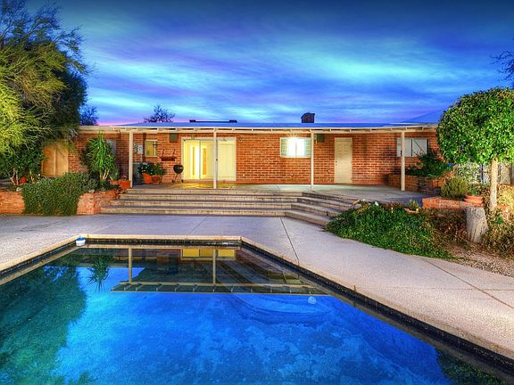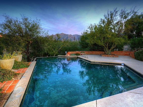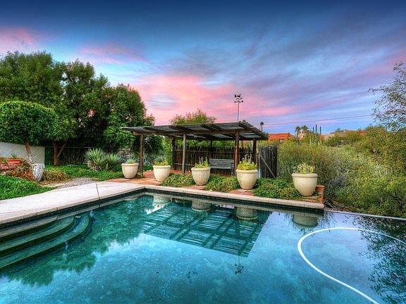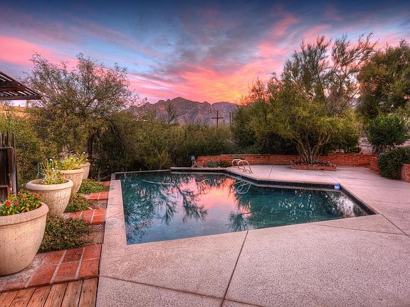 *OPEN HOUSE 12/10 1PM to 4PM* You will be enchanted by the spectacular zen-like backyard oasis of this classic Tucson adobe territorial with lovely Catalina Mountain views featuring a spacious covered patio, mature vegetation and a fabulous raised ramada/deck with swing that overlooks the sparkling pool and magical pond area - what a delightful space to relax and unwind! Inside you will find formal living and dining areas with a cozy fireplace, a generous family room open to the kitchen and 3 bedrooms plus a den that could e