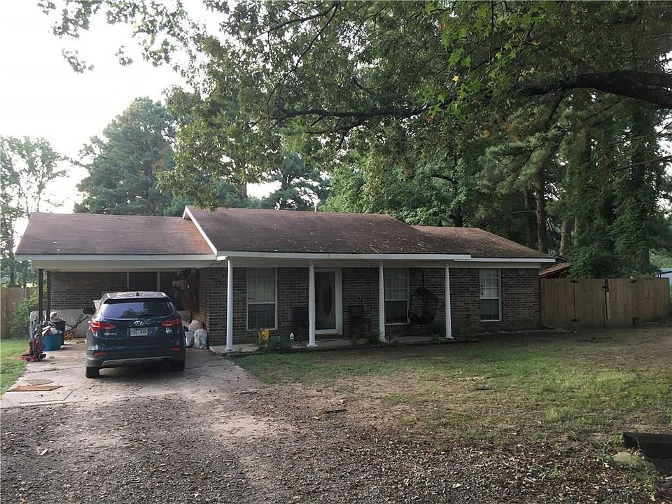 2 bedroom, 1 bath brick home sitting on 3 acres with a 1 car attached carport, oversized laundry room, ceramic wood look tile flooring in living room, kitchen hall, carpet in bedrooms. Ceramic tile counters in kitchen, breakfast bar, covered patio, storage building, 2 sheds, extra water tap. Great starter home or retirement home. Home is currently being used as a rental.