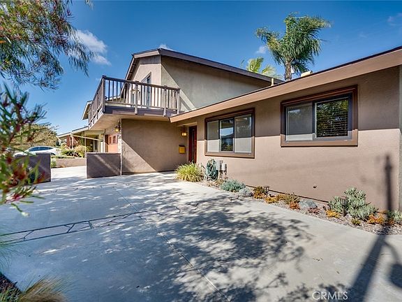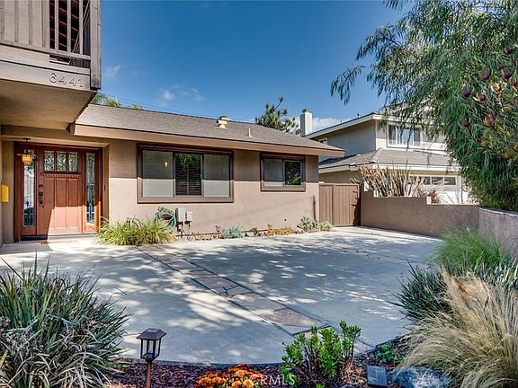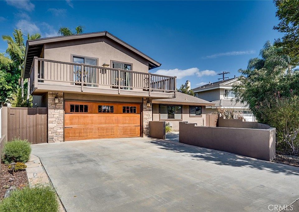 Prestigious beach living at it's finest! This gorgeous home offers exceptional curb appeal with a spacious and strategically landscaped front patio along with a large viewing balcony above the garage plus plenty of "Craftsman" style features throughout. As you enter the home you are greeted with elegant American cherry wood floors which run throughout the downstairs as well as upstairs. Then comes the large dining room area which flows into the kitchen. The kitchen features updated cabinetry, including lazy Susan's, pull-outs and a large pantry, along with granite counters, tiled backsplash & flooring, a stainless steel vent hood + refrigerator which remains with the home. The formal living room has a fireplace with gas starter and a classy Mahogany slider leading to the rear yard. The main level bathroom has been updated with a new vanity, toilet, fixtures and vinyl plank flooring. There is a nice sized main level bedroom which could also be used as a den or an office. There are 3 nice sized bedrooms upstairs, 2 of which have direct access to the front balcony, along with an updated bathroom featuring a new vanity, toilet, fixtures and vinyl plank flooring. There are custom solid panel Mahogany doors thru-out the downstairs, including the front door, as well as solid pine doors thru-out the upstairs. Bonus features include; smooth ceilings, dual pane windows, newer interior/exterior paint, a complete house re pipe with PEX plumbing, a relined main sewer line, newer heating, A/C, ducting, garage door and an 11 year old roof. Best of all, the private rear yard comes with a Flagstone patio, a built-in gas fireplace, stone decor, a grassy area along with mature growth plants and trees, great for entertaining! This lovely home is also walking distance to award winning schools, a park, golf, shopping, restaurants and is only a 5 minute drive to the beach.
