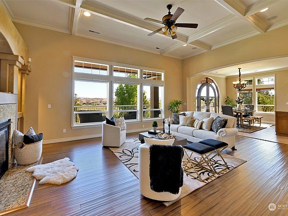 Perched at the top of the hill above Cowiche Canyon lies this luxury 4 bed, 3.5 bath home. This highly desirable location on Scenic Drive is minutes from shopping and dining, while offering breath taking vistas. The 1.2-acre lot includes a buffer hillside, with a massive back lawn area. On the main level, an open floor plan boasts a gourmet kitchen, eating space and great room with sweeping views of the canyon. A complete primary bedroom suite, beautiful formal office and outdoor dining and recreational deck round out main floor amenities. The lower level provides 3 more bedrooms, complete movie theater, gym, and family room with French doors leading out to the huge patio just outside.