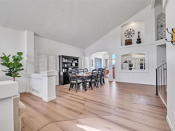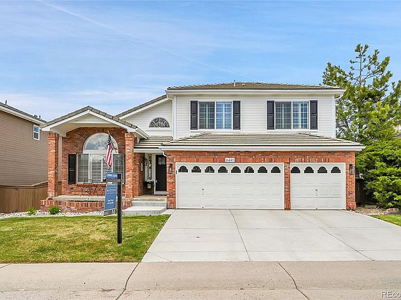 Welcome to this stunning 5-bedroom, 4-bathroom home located in the desirable community of Highlands Ranch feeding into the well sought after Rock Canyon High School. Boasting 4,217 square feet of living space, this property offers luxurious features and upgrades throughout. Upon entering, you are greeted by new luxury vinyl flooring that adds a touch of elegance to the home. The main level features a spacious living area with a cozy gas fireplace, perfect for relaxation and entertainment. The kitchen is a chef's dream with granite countertops, stainless steel appliances, and plenty of storage space. This home is perfect for those who love to enjoy the outdoors, as it offers breathtaking mountain views that can be enjoyed from the back deck or patio. The large windows allow for an abundance of natural light to brighten up the space and enhance the mountain views. Plantation shutters offer both privacy and style, while the recently painted exterior gives the home a fresh and inviting curb appeal. The finished basement adds versatility to the home, offering potential for a home office, gym, or additional living quarters. One of the highlights of this property is the walkout basement, providing additional living space and direct access to the outdoors. The backyard is a serene oasis, perfect for outdoor gatherings and enjoying the beautiful Colorado scenery. Located in Highlands Ranch, this home offers access to a variety of amenities, including parks, trails, shopping, and dining options. With easy access to major highways, you can easily explore all that the Denver metro area has to offer. Don't miss the opportunity to own this exceptional home with its luxurious features, mountain views, and prime location. Schedule a showing today and experience the beauty and comfort this property has to offer.