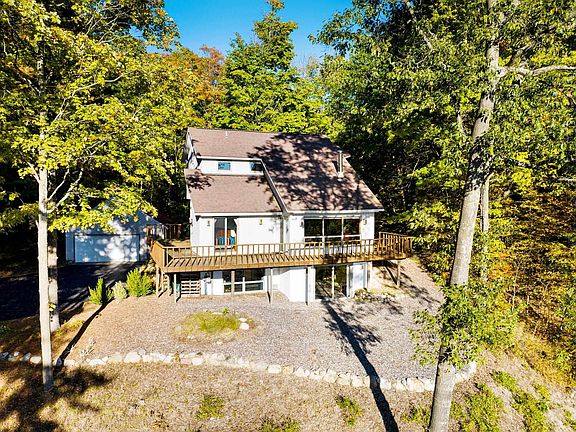 Million-dollar views for a fraction of the price! Enjoy breathtaking views & a meticulously updated home with premium fixtures and finishes for those who appreciate quality. The home offers 4 bedrooms, 2 baths, views from every level, vaulted ceilings, abundant natural light & over 4 acres of privacy. Best of all you will enjoy access to the Beach Club on Lake Bellaire. Kitchen Choreography custom-designed the kitchen & baths with the attention to detail you’ll appreciate. The kitchen is a masterpiece of efficiency & functionality, with ingenious cabinet features for optimal use of the space. The dining room showcases a custom chandelier commissioned by the Jordan Valley Glassworks. It echoes the copper panels of the room’s cabinetry. The warm & inviting living room offers acacia hardwood flooring, a wood stove, & a wall of windows framing the incredible view. Step out to the deck to enjoy sunsets, fireworks, & the annual Balloons Over Bellaire event. The main floor also includes a guest bedroom & an updated bathroom, with Cambria counter & lovely tile shower. Upstairs, you’ll find a cozy loft, two bedrooms & a second updated bath, complete with heated tile floors, heated towel rack, & Cambria counters. The skylights allow you to gaze at the stars at night & enhance the natural lighting prevalent throughout the home. Take note that the carpets are all premium Karastan wool carpeting. The ground floor adds a family room, with radiant heated tile floors, a bedroom(non-conforming), & the laundry with plentiful storage. There is also a gas stove for added warmth & ambiance. An oversized garage with built-in shelving will meet all your storage needs. Outside, enjoy low-maintenance landscaping, perennials, a fire pit, & peace of mind on a private lane with only one neighbor and no homes in sight. This is your chance to relax, soak in the views, & enjoy golf, skiing, tennis, and more at Shanty Creek Resort.