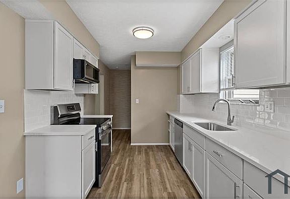 White shaker cabinetryStainless appliancesGranite countertopsBrand new beautiful kitchen