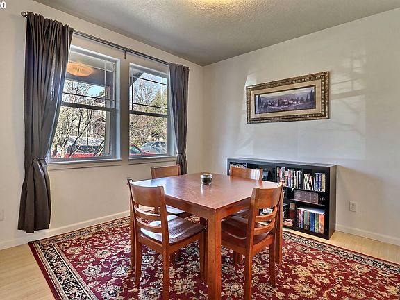 Charming Townhouse in beautiful Piedmont. Entry w slate tile flooring. Bamboo flooring and high ceilings on main. Gas fireplace, and exterior door to patio in living. Kitchen features gas range, pantry, and refinished cabinets (2020). Light-filled dining. Master bed, spare bed, and laundry closet up. Master bed features own vanity that opens to shared full bath. Fully fenced back patio available that gives access to detached garage. 10 Energy score. Click Vtour link for 3D walk through and more! [Home Energy Score = 10. HES Report at https://rpt.greenbuildingregistry.com/hes/OR10183109]