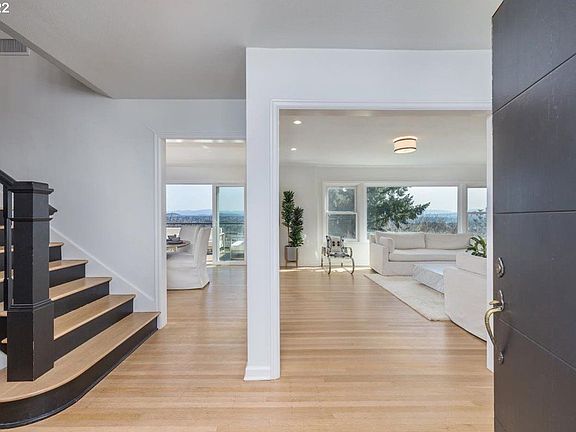 SW Hills stunner in coveted neighborhood tucked back in an area that rarely sees for sale signs. Beautifully remodeled, surrounded by views of Mt Hood, Mt St Helens, PDX and Willamette River. Jaw dropping chef's kitchen and primary spa like bath, both with heated tile floors. Everything updated with tasteful, impressive design. Sauna to relax in, parklike backyard, garden boxes, tool shed & car charger. Steps away from hiking at George Himes Park, minutes from Hillsdale shopping, OHSU, dwtn PDX.