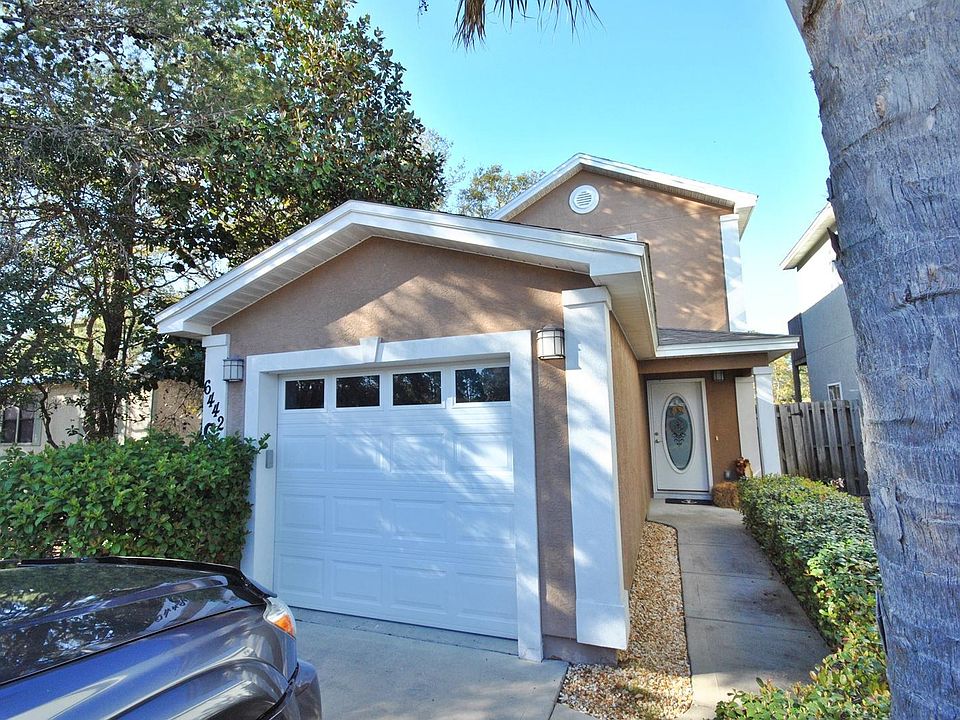 Nice affordable home on Panama City Beach. This home features a nice open floor plan with garage. Easy to maintain tile throughout the entire first floor. Nice sized kitchen with all appliances and lots of cabinet space. The master bedroom upstairs has French doors leading to its own balcony overlooking the fenced in back yard. Furthermore this home includes yard maintenance and irrigation in the LOW monthly association fees! Centrally located - close to the beach, and Navy Base, schools, and shopping. Call to see today