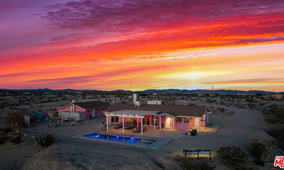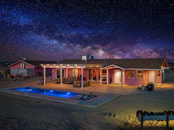 Perched above the High Desert with commanding, unobstructed views stretching across the Mojave, this private Joshua Tree estate captures big-sky sunsets, mountain silhouettes, and total horizon-line freedom. From sunrise to golden hour to star-filled nights, the landscape is the constant backdrop, uninterrupted, protected, and cinematic. Set on 5 acres and bordered by BLM land on two sides, the property offers rare long-term view security and a level of privacy that's increasingly hard to find. The main residence is thoughtfully oriented to the scenery, with expansive sightlines from living spaces and outdoor patios that feel suspended above the desert floor.In addition to the primary home, the property includes a detached 1-bedroom, 1-bath ADU that has historically functioned as a high-end creative suite. The dual-structure layout allows an owner to pursue two short-term rental permits under current local regulations (buyer to verify), creating a rare opportunity to monetize both views and privacy in a permit-restricted market. Whether used as a full-time residence, a lifestyle retreat, or a view-driven STR investment, this estate delivers what most Joshua Tree listings cannot: true elevation, protected open land, and a horizon that belongs to you just minutes from Joshua Tree dining and shops and Joshua Tree National Park.