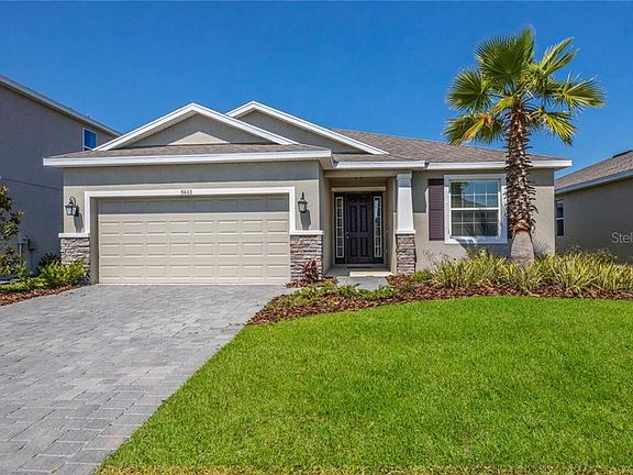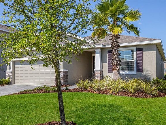 Buyer financing fell through, so the opportunity to own in highly desired Trevesta is available once again! Why wait for new construction when you can move in now? This beautiful Laurel II DR Horton floorplan is designed for maximum comfort. This home is visually stunning from the moment you pull in, thanks to a paver-brick driveway, stone accents on the bottom half of the garage and entryway, and crisp accent paints. Walking through the foyer brings you to a great room concept with high ceilings. The kitchen features a wood cabinets adorned with crown molding, granite countertops, and an oversized island topped with feature Edison style pendants. An adjacent breakfast area is perfect for casual meals while the dining room sits opposite the great room. Off the great room is the master suite, a place of luxury with tray ceilings and a spacious walk-in closet. Master bathroom has a raised vanity with double sinks and granite countertops. The garden tub provides an option of additional comfort besides the walk-in shower. Bedrooms two and three rest at the front of the home where they share a hallway and full bathroom, the split floorplan providing plenty of separation and privacy from the master suite. This premium lot rests on a lake, providing a beautiful backdrop to enjoy from the comfort of the covered lanai. Trevesta Community offers a host of incredible ammenities in their lakefront recreational center, including 5,600 sf clubhous and fitness center, resort style pool, and splash pad. Close proximity to I-75 makes this location ideal!