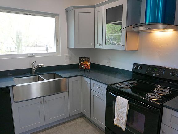 Have you always wanted to live in the Foothills but cannot find something modern AND affordable? This remodeled 3 bedroom, 2 bath home will knock your socks off! The owners have raised ceilings, expanded and remodeled the kitchen and updated the bathrooms. Everything is modern and ultra chic! **AVAILABLE MID-FEBRUARY** Located on a cul-de-sac, this gorgeous home was sited to take maximum advantage of privacy and views. This is a must-see! It's walking distance to La Encantada and wonderful restaurants and shops at N Campbell and E Skyline Drive. With dove gray kitchen cabinetry, slate tile floors and soothing light blue accent walls, this home belongs in the pages of House Beautiful magazine! The spacious kitchen and both bathrooms are completely remodeled! The owners spared no expense to make this 3 bedroom house a contemporary dream! Yet it is affordable at only $1,550! Enjoy TWO patios with lush landscaping and gorgeous mountain views. Even the kitchen has a large picture window with a superb view of the Catalina Mountains! Equal Housing Opportunity Professionally managed by Fort Lowell Realty & Prop Mgmt. $45 application fee per adult. $1,550 refundable security deposit; $200 nonrefundable refurbishing fee. $150 pet fee per pre-approved pet. Maximum of 2.