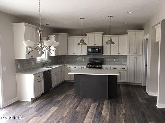 Upgrades Galore! 9' ceilings on main floor. 9' ceilings on daylight level. Over 2500 finished square feet. Castled cabinets in kitchen. 2nd floor utility. Full landscaping has been done along with underground sprinkling. Larger than most 3 stall garage. Quartz countertops in kitchen-NOT granite. Walk in pantry in kitchen. Tray ceiling in master bedroom. Fireplace in great room. Just a $25 per year association fee. Flex room off foyer. Custom wainscoting in master bedroom and flex room. softclose drawers and cabinet doors. lower level roughed in for future bedroom and bath and is a full walk out. 4 bedrooms. 2 1/2 baths. Byron Center Schools