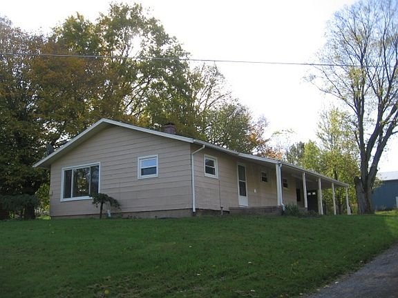 Country ranch on an almost 3 acre partly wooded setting. Extensive remodeling has been done mostly since 2015, including: new drywall, flooring, insulation, all electrical (since 2005), as well as the range, disposal, washer, dryer and microwave. The 3 heat sources provide for low utility costs. Primary heat source is natural gas hot water with wood boiler system in carport and wood stove in living. Attached garage noted is a carport. The large pole barn is perfect for hobbies, storage or a horse for the fenced pasture.