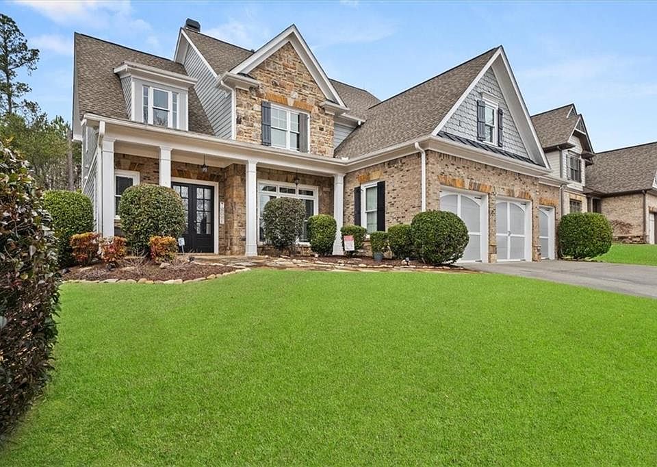 Located just minutes from Lake Lanier in the desired community of Lanier Springs, this 4-bedroom Craftsman is the perfect location for your next home. Positioned on a charming lot with a fenced backyard, the home's exterior features a beautiful blend of stone and brick. As you enter your new home through a soaring two-story foyer, you walk into a space that was created for entertaining. The spacious, open-concept layout includes 10-foot ceilings, a large dining area with coffered ceilings, a cozy living room complete with a stacked-stone fireplace, a full bedroom and bathroom on the main level ideal for a home office or guest space, and a bonus living space with exposed beams, vaulted ceilings and a second fireplace that transitions perfectly into the beautifully appointed kitchen. Boasting stainless steel appliances, stacked double ovens, granite countertops, tile backsplash, an expansive functional island with sink and breakfast bar, and views to the living and dining area, this open-concept kitchen is the heart of this home. As you make your way to the second level of the home, you'll find three bedrooms, plus a bonus room that could easily convert to a fifth bedroom, including a spacious primary bedroom with a separate flex area ideal for an office or study and a spa-like primary bathroom featuring a large walk-in closet with a separate shower, and a large soaking tub. The backyard provides the perfect retreat for enjoying your morning coffee, or a friendly happy hour after a long day. Providing private natural views as the backdrop, this covered stone patio is the ideal setting for relaxing and enjoying time with friends outdoors. Nestled in the heart of the Lanier Springs community, renowned for its top-tiered Lanier Schools, this home provides you with every comfort and convenience. Don't miss your opportunity to experience lakeside living every day.