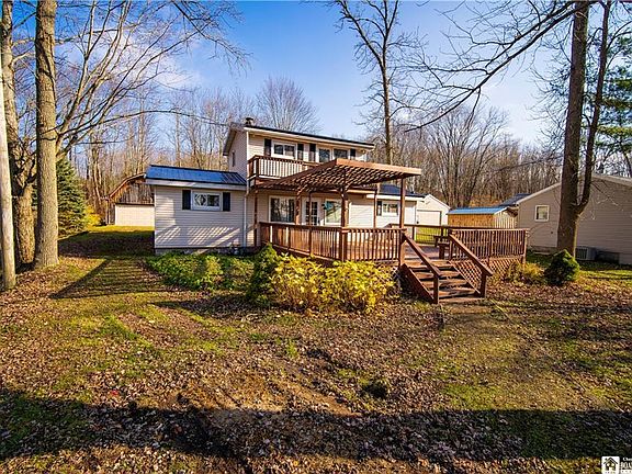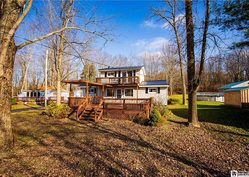 Enjoy this remodeled 4 BR/ 4bth home w/ lake views/access, detached garage, plenty of space to entertain outdoors, and all located on a quiet street. Rebuilt from the foundation up this home features a new heating system, electrical, metal roof, flooring, fresh paint, recess lighting, appliances and so much more. As you drive up to the home you will see a large 24 x 24 front deck w/ a pergola and built-in seating w/ views of Chautauqua Lake. Once inside you will notice an open concept family/dining area w/ two bedrooms on the right and left side that feature their own private bathrooms. In the dining room, you have a clear view of everything going on in the kitchen along w/ access to a large screened-in side porch with access to the backyard. On the other side of the dining room is another bedroom and a large bathroom/laundry room. Finishing off the first floor is a utility room off the kitchen and a second screened in side patio with access to the backyard. The second-floor features a larger bedroom w/ private bathroom and a private balcony. The detached barn/storage building offers plenty of storage space. You won't want to miss this move-in ready home!