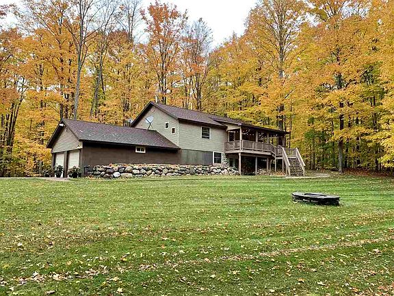 Well maintained custom home on 10 private acres! Open floor plan with Brazilian Cherry wood , tile and laminate floors throughout for easy maintenance and durability. Well designed kitchen with stainless steel appliances and a HUGE pantry that adds plenty of storage space. Main floor master bedroom and laundry room with plenty of cupboards. The finished walk out basement has 2 bedrooms, full bath, a large family room and mechanical room with a sink and 200 amp electric and a new furnace in 2019. Wonderful wrap around covered deck for entertaining with views of woods and a lush irrigated lawn perfect for bonfires. Two car attached garage with attic storage, two circular driveways (upper and lower level accessible) central air and a security system! Close to many outdoor recreational sites including Manistee Lake and Starvation Lake. Perfect location to get away from it all yet only 35 miles to Traverse City, Gaylord or Boyne City! Owners currently use Viastat Internet service, great for streaming. Call today for your personal tour!