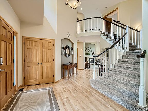 MAIN LEVEL: *Dramatic 2-story foyer w/ gleaming hardwood floor *Living room w/vaulted ceiling, bright west-facing windows, wood blinds & tile floor *Gourmet kitchen updated in 2023 w/new countertops, gas cooktop, recessed & pendant lighting, updated stainless appliances, sink, large pantry *Formal dining room w/ beautiful tile floor & pan ceiling *Family room – soaring 18’ ceiling, gas fp, tv nook, large bright windows *Office or add’l bedroom w/ French doors & walk-in closet *Main-floor laundry, newer washer & dryer w/ pedestals & lots of cabinets *Elegant dual staircase from both entry & family room to upper level