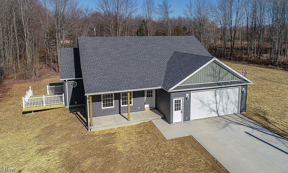 This New Construction Ranch with a Front Porch, Deck and oversized 2-Car Garage is move-in ready and walking distance to Pymatuning Lake & the Boat Launch! On nearly an acre lot and custom built by an overly meticulous builder who likes everything "just so", this house has been crafted to be your forever home. The floor plan has been designed to match today's lifestyles so even the Chef won't be left out when entertaining friends and family. Stainless Appliances, Granite Counters and Designer Fixtures overlook an Open Living Floor Plan with an Outside Deck for entertaining. All three Bedrooms are oversized and the Owner's Suite has it's own bathroom and Walk-In Closet. The garage has hot/cold water for washing car and toys.