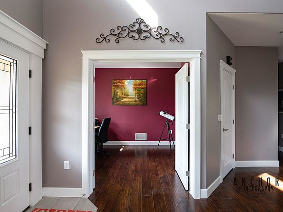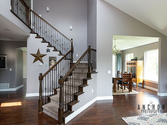 Custom home with luxury upgrades, including tiled showers, custom cabinets with granite countertops, under cabinet lighting, upgraded lighting throughout the home, vaulted ceilings, 9ft ceilings on main level, paved drive and much more!