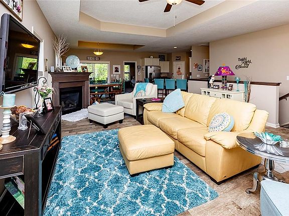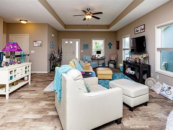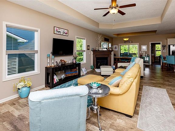Curb appeal, covered deck backing to trees and finished lower level. This gorgeous ranch home with landscaping in full bloom and front porch will welcome you home. With an open plan, entertaining and relaxing with family and friends is a breeze. Cove ceiling details and gas fireplace with trim accents is a quality detail you won't overlook. Granite counters in kitchen with breakfast bar, staggered cabinets and walk in pantry. All appliances, including washer and dryer, are included. Master suite with fabulous view of backyard trees. Private bath with tile shower walls, double sink vanity and walk in closet. Laundry ROOM so you can close the door and stay organized. Finished daylight lower level with additional large bedroom, 3/4 bath and 2nd family room. Easy access to Ankeny, Des Moines and Interstate and right by Woodland Hills Golf Course.