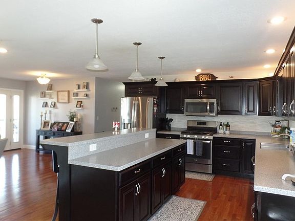 Beautiful sprawling ranch on just over 19 acres, excellent location! This ranch home offers 4 bedrooms, 2 full baths and a half bath, a laundry room, solid surface countertops, and an extra-large living room. All the rooms in this house are oversized. The property also includes a 36'x24' detached garage with a full walkup loft! Plenty of room for hunting and farming, located on a dead-end road. This property truly has it all including hi-speed internet!