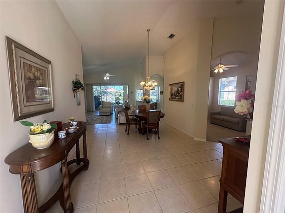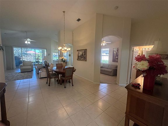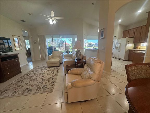Enjoy the Florida sunsets from the west facing Lanai overlooking the tropical landscape and pond oasis views. This is a very well-maintained one level living house in the popular Tara Preserve golf course community. Charming 2-Bedroom PLUS Den Home with absolutely no stairs to climb! The Tara Preserve community is known for its picturesque lake views and the array of amenities that await you at your liesure. The ease of living ranch floor-plan comes with 2-bedrooms and a den that can easily be converted to a third bedroom. The residence offers a perfect blend of comfort, space, and tranquility. Entering the house, you'll be greeted by the volume of open space accentuated by vaulted ceilings that create a sense of spaciousness and elegance. The very popular open-concept great room floorplan encompasses the living room, dining area, and kitchen, making it an ideal setting for both relaxation and entertainment. The primary bedroom is an oversized master suite, providing a private and spacious retreat for the end of your day. The master bathroom includes all the features one may desire including a double vanity, a walk-in shower, and a soaking tub. The second bedroom is very large and will fit a full bedroom including a desk or small entertainment center ideal for the rest of your family or a guest on an extended visit. The den offers a versatile space that can be transformed to suit your needs whether it's a home office, a hobby room, a cozy reading nook, or a third bedroom. Now enter the screened Lanie:) with breathtaking lake views that await your relaxation and daydreams no matter if you are enjoying your morning coffee or evening wine. Tara Preserve residents enjoy a vibrant community with amenities for everyone. LOW HOA fees include internet and cable, giving you great value. Take advantage of the tennis courts and pickleball for active recreation. The community's heated pool and spa are perfect for relaxation and meeting neighbors. The clubhouse hosts a variety of neighborhood clubs and gatherings, providing opportunities to connect with fellow residents. For golf enthusiasts, Tara Preserve offers a pay-as-you-play golf course, and the best part is, no golf membership is required! Conveniently located, you'll find yourself close to everything you need. Restaurants, shopping, and I-75 are just moments away. Plus, you're only a short 30-minute drive from the world-famous beaches of the Gulf Coast. Don't miss this opportunity to make this lovely home in Tara Preserve your own.