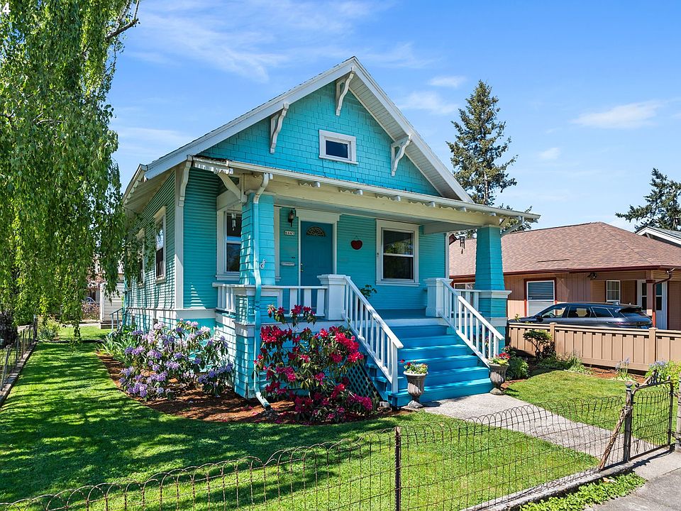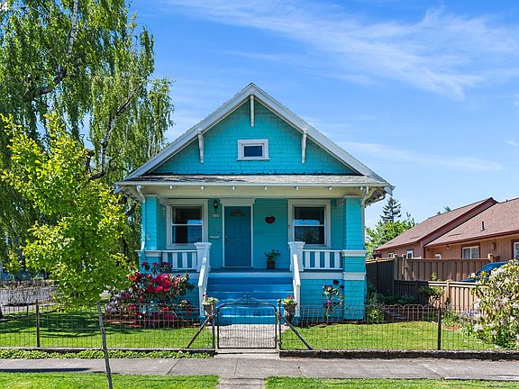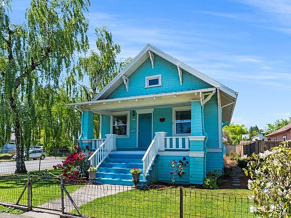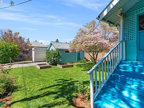 Discover a charming 1911 bungalow home with 1536 square feet of well-maintained living space. As soon as you step onto the large front porch, you will feel the character of this home. The spacious living room and dining area are bursting with charm, and the south-facing windows let natural light flow in. Underneath the wall-to-wall carpet, you'll find beautiful wood floors just waiting to be finished. The tall ceilings create a sense of openness and airiness throughout the home. The kitchen, located off the dining area, is ready for your creative touch. The two Jack and Jill bedrooms both have access to the bathroom, offering convenient living for you and your guests. The back porch, enclosed with lattice, is accessible from the kitchen and is perfect for entertaining. The basement can be accessed from the kitchen or via its own private entrance. The basement is semi-finished and offers plenty of usable space including a work bench with bright lighting. As if that is not enough, there is a nice size detached garage located next to the backyard. The yard is fully fenced with beautiful mature plantings and a gorgeous dogwood tree that you can see from the kitchen window. Every corner of this home exudes 1911 charm and is definitely a must-see! [Home Energy Score = 5. HES Report at https://rpt.greenbuildingregistry.com/hes/OR10226833]