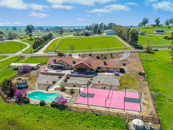 You can have it all, lg 4008 sqft country home on 4.9 ac, yet minutes away from Frwy 168, Clovis North HS & River Park. The home has 7 br, 4 ba, 3 car garage with an attached apartment/in-law suite. Upon entering the home, you will be greeted by a spacious family rm (approx 25'x25'), that has high vaulted, exposed wood beam ceilings with a cozy wood burning F/P. There is also a lg media/game rm. The heart of this home is a spacious family kitchen, which features an over sized center island/breakfast bar with a custom copper farm sink and beautiful granite counter tops. The expansive windows look out from the kitchen on to the grazing pastures, lg entertainment patio, lovely pool, custom all purpose basketball court, and lighted riding arena. There is also a two-horse barn with tack rm and miles of private horse riding trails. This beautiful property is located at the end of the cul-de-sac with amazing rolling foothill views. Well test in 2011 was 19gpm.