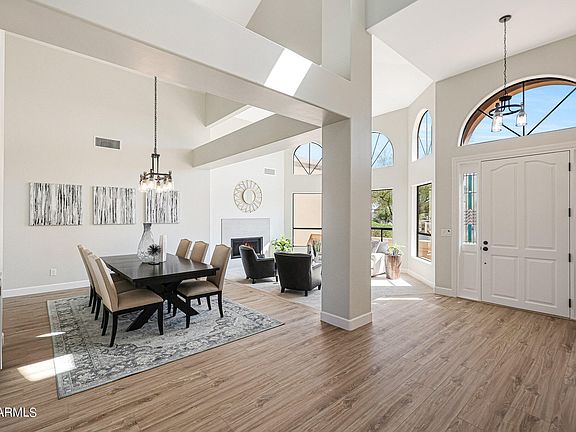 WOW! This home has recently been remodeled by a licensed contractor. The home features fresh paint, new flooring, and updated fixtures throughout. Walk in to a spacious living room with vaulted ceilings, a cozy fireplace, and filled with natural light. The formal dining area is ready for entertaining with a bar area and wine fridge! The kitchen has been completely redone with new white cabinets, granite counter tops, stainless steel appliances, and new hardware. Plenty of storage in the walk in pantry! All *4* bedrooms boast new carpet, fresh paint, and new light fixtures. The master bedroom is a true retreat with tall ceilings, sitting area, fireplace, and spa-like bathroom. Enjoy the AZ weather from the sparkling blue pool, oversized patio, or rooftop patio!