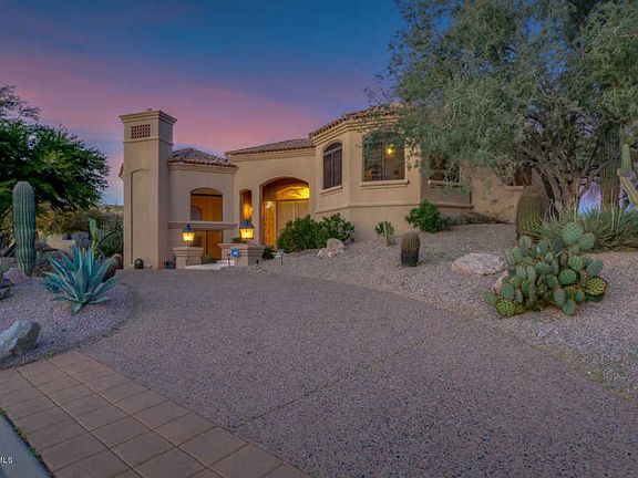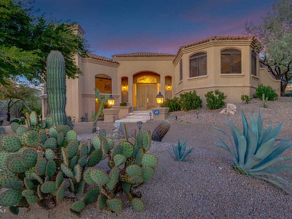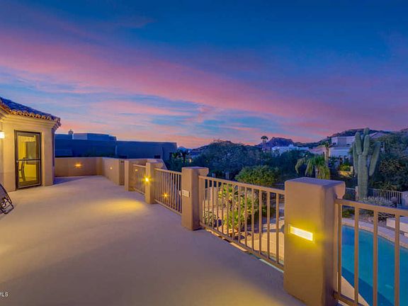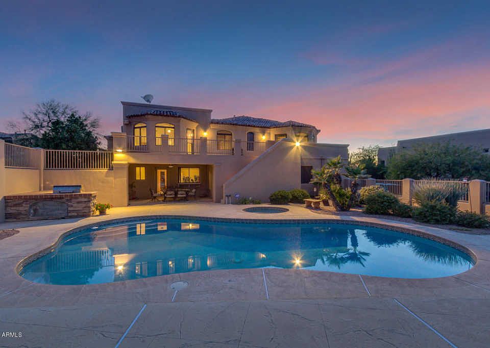BACK ON THE MARKET! Buyer had change in family circumstances. VIRTUAL 3-D TOUR ! With a grand entrance, elegant living room with 17' coffered ceilings, gas fireplace and wet bar, prepare to be impressed! The kitchen boasts a Subzero refrigerator, gas cooktop, double ovens, breakfast bar and 12'x 6' walk-in pantry. And where to dine? Choose from the expansive deck with sunset views, covered patio, breakfast room or formal dining room. Master suite features deck access, bay window, double walk-in closets, jetted tub & snail shower. The backyard is an Arizona dream for sunny days & cool evenings w/pool, spa, patios & gas grill. Step in from the pool & relax in the sauna. Media room, bonus room & extended 3 car garage complete your wish list. Home warranty included. Tour today!