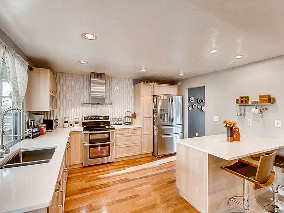 This is the one you have to see. BEAUTIFUL Remodeled ranch home with amazing upgrades: soft close Maple Cabinetry, Quartz Countertops, upgraded Stainless Steel Appliances, pull out pantry, glass front top hinged cabinets, designer backsplash and free standing range hood. Gorgeous hardwood floors in kitchen, foyer, living and dining rooms. Light and bright open floor plan with vaulted ceilings. Huge 22 X 12 four season sun room with removable awning perfect for entertaining and expanded living space. Master bedroom suite has walk in closet with cedar floors, spa like shower with European shower door. Easy access out of the back gate to neighborhood Greenbelt and pathway to Heritage Elementary School. Awesome location within walking distance to Fiddlers Green Amphitheater, shopping and so much more. Finished basement has non conforming bedroom, huge family room area perfect for entertaining or childrens play area and half bath. Large basement storage room and ski closet and radon system. Recent upgrades include: Goodman Furnace/humidifier, Nest Thermostat, Ring video camera doorbell, front and rear security cameras, front and rear motion security lights, frost free exterior faucets, fireplace tile and hearth, 3.96 KW 12 panel Solar System with attic fan. Upgraded attic insulation to R44+. New fences, front lights, water heater, basement lighting, sewer line, basement vinyl planking, Rachio Sprinkler controller and valves, multiple sprinkler heads and brand new microwave oven.