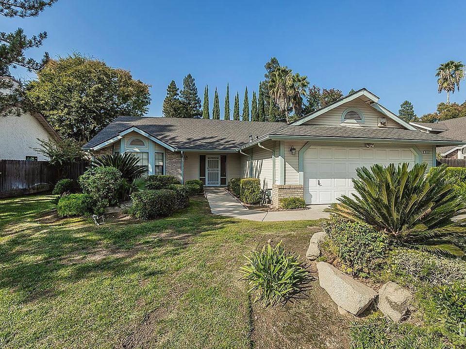 This lovely 3-bedroom, 2-bath home is tucked away in a serene neighborhood, conveniently located near some of Fresno's best amenities, shopping centers, and hospitals. Be welcomed into an open and airy layout with vaulted ceilings in the family room and living area, where natural light spills into the room through dual skylights.You will have peace of mind knowing that significant updates have already been completed, including a newer water heater (2024) and new stainless steel kitchen appliances (2025) featuring a wall oven, microwave, stovetop, kitchen exhaust fan, and dishwasher, all updated recently. New tiling and clean white quartz countertops give the kitchen a modern feel, and a kitchen island with a butcher block top provides extra storage and a delightful space for any chef.The home is surrounded by mature, lush landscaping and established fruit trees, allowing you to enjoy tangerines, lemons, and oranges directly from your own backyard.