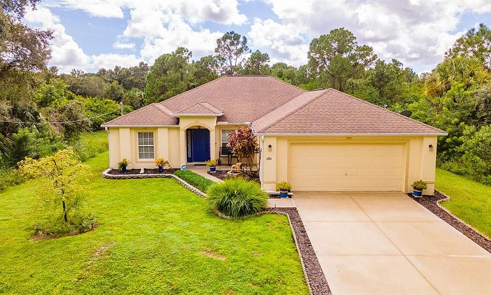 Here is your tropical piece of paradise!!!! Privacy all around you. Beautiful quiet surroundings. You will enjoy cooking dinner in the updated kitchen, Black Stainless Steel APPLICANCES, Black granite double sink, Solid Cherrywood cabinets with driftwood stain, Cambria Quartz counters, plenty of storage underneath the HUGE Quartz counter top breakfast bar. Great for entertaining. Small desk area off of the kitchen and a large pantry. Tons of storage! Porcelain wood plank flooring in Livingroom, family room, and dining room. Updated guest bath with Quartz vanity and 2 quest rooms on opposite side of the house for those out of town guests. Spacious master bedroom and bath. Just Relax in your solar heated screened in pool. The Lanai will make for some very private peaceful evenings to watch the sunsets. Close to Shopping, Schools, Dining, the North Port Water park. The Cool Park Today Atlanta Baseball field and of course the beaches.