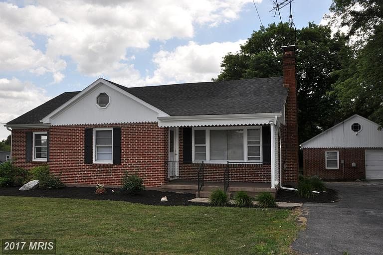 Great for home based bus w/rentals.Nicely maintained all brick ranch.Basement fin w/full kit, bath & family rm w/sep ent, owner used as rental.Lg LR w/wood stove sleeve.Hardwood, lam & ceramic fls.1100 sqft brick gar w/rear loading doc,attic,water,electric & Efficiency apt/office.Just under 1/2 ac & backs to Farm conservation land.Full floored attic,CA. Possibilities endless in Comm growth area.