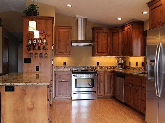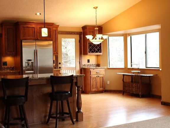 Secluded, quiet 5 acres! Beautiful split-level home has had the kitchen completely remodeled February 2012, including new stainless steel appliances (refrigerator included), granite counter tops, distressed knotty alder cabinets and cork flooring! Split level, the downstairs having a bonus room, bedroom, laundry and bathroom. Hall bathroom has a skylight, granite counters and tile flooring. Borders Laidlaw Butte 1000 acres for walking and riding. Property is at the end of paved road.