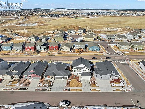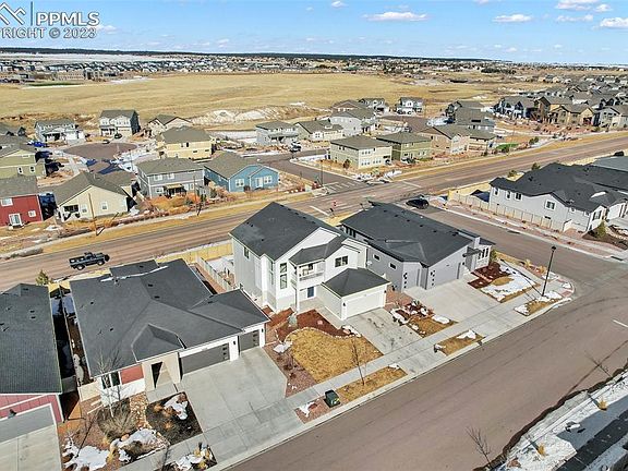 Experience luxury living at its finest in the builder's Model Home with all of the model home upgrades. Barely lived in with less than two years of use, this property boasts an expansive main level living space with a comfortable open concept and hardwood flooring. The great room and casual dining area are perfect for entertaining with installed surround sound, while the convenient mudroom off the garage offers a practical drop-and-go area for busy families. The gourmet chef kitchen with quartz countertops, large walk-in pantry and deck, provides ample space for cooking and storage. Upstairs, you'll find two spacious secondary bedrooms, a cozy loft with a balcony to enjoy mountain views, a convenient laundry room, and a luxurious master suite with private entry and walk-in closet. The grand finished basement provides a massive recreational space for relaxation and an additional bedroom. With upgraded carpet throughout the home and a 2-year warranty, this property is located in the highly sought after Academy District 20 and is the perfect place to call home.