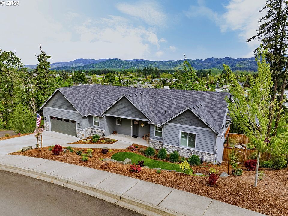 This Mountaingate beauty is ready for you! With over $75,000 in recent updates & extensive landscaping work completed, the only thing you'll need to do is move in and relax. Main level living allows you to take in the gorgeous mountain views from your large north facing windows. The gourmet kitchen includes a granite island, new 36" GE Cafe gas range & hood, built in microwave drawer & custom cabinetry. Vaulted & beamed ceilings throughout the living, dining & kitchen areas. Primary suite offers you direct deck access to enjoy the pass-through gas fireplace. Primary bathroom has a walk in shower with separate soaking tub. California Closets organization system has been added to the walk in closet. A mudroom directly off the garage gives you extra space for the laundry, pantry needs, storage cabinets & half bath areas. Downstairs you'll find high ceilings with 2 additional bedrooms, a full bathroom, office/family room, plus additional storage space not included in the square footage. Inviting outdoor sitting areas are perfect for you to entertain & take in the beautifully landscaped yard. This custom home has high quality features and a lot more to offer, all while being located in a sought after hillside neighborhood in east Springfield. Shown by appointment only so contact your broker today!