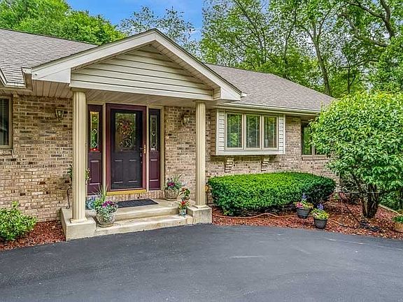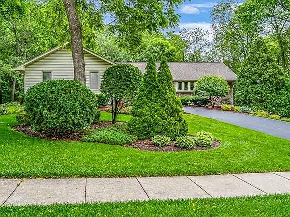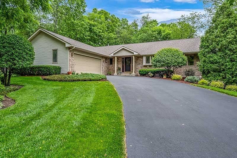 One owner custom built ranch on almost a 1/2 acre of private and wooded beautifully landscaped grounds. Main floor features large eat in kitchen with ample cabinet space and island, built in desk & corian countertops. Large living room with dual french doors to large deck overlooking back yard and gas fireplace. Vaulted ceilings, Bose sound system with built in speakers and dining space. Main floor laundry. Master bedroom with tray ceiling, bay window and private full bath. Large additional bedroom on the main floor. Lots of closet space. Finished full walkout lower level features full bath with whirlpool tub and bedroom with walk in closet. Family room and office area with a slider out to the patio area. Large unfinished workroom, storage area, utility room and wine cellar. Pella windows throughout, roof new in 2014, comfort height toilets and new water heater in 2020. This home is in excellent condition and move in ready. Must see!