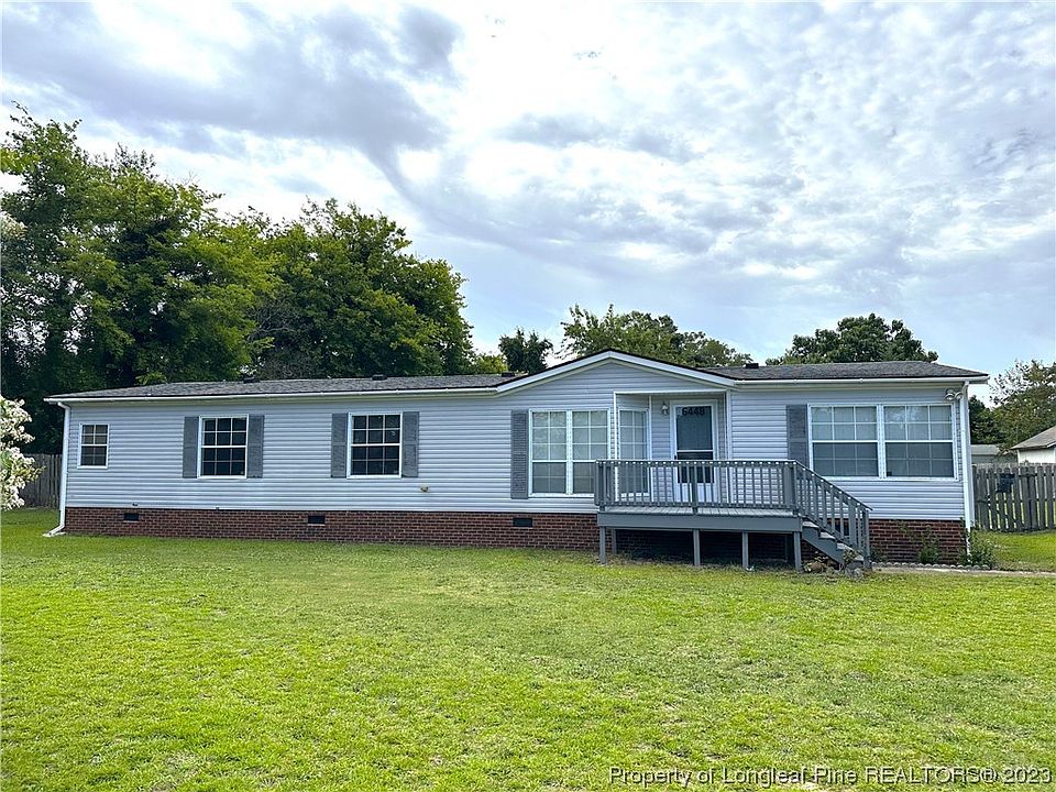 Large half acre lot in Stedman with a three bedroom-two bath manufactured home. Home comes with a large great room with laminate flooring and a fireplace. Kitchen has an island and breakfast bar. Master bedroom is large with walk in closet and master bath has garden tub. Home has a overhang for entertainment or relaxation backyard. Come see today!
