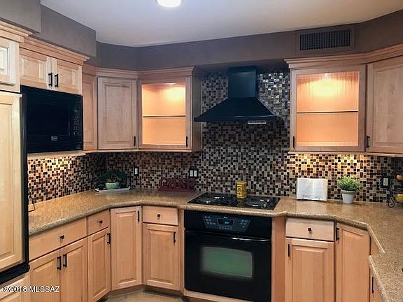 This Foothills Clusters home is light and bright with massive Catalina Mountain views, City views and the luxury of a very private walled back yard and swimming pool. Outdoor kitchen (w/instant hot water and gas grill). North /South exposure. Great room floorplan, bay window to overlook the pool and a split TWO Master bedroom plan. Each master suite with garden tub, snail shower in one master. Two other rooms could be office/ den or bedrooms (with doors installed in what was once a closet) the Den area has a half bath, private entrance, pocket doors and easily is a guest suite or just a private office or bedroom that opens right out to the patio/pool/BBQ area. Custom kitchen cabinetry, lots of recessed and custom lighting throughout. new Roof 9/2017. This home is priced to sell!