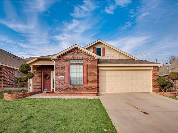 Great 4 bed, 2bath home located in Eagle Mt-Saginaw ISD! Formal dining area located just off the kitchen and living area with chandelier and tile flooring. Office located just office entryway with wood flooring and french doors. Large, open kitchen with island, vaulted ceilings, recessed lighting, 42in cabinets, and SS appliances. Lots of cabinet space and large pantry! Spacious master bedroom with vaulted ceilings and large WIC. Master bath features dual sinks, garden tub, and separate shower. Home is located directly across from a park and playground. Large backyard and no rear neighbors!