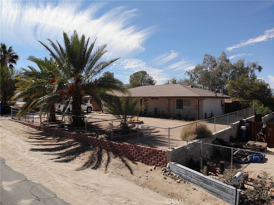 This gorgeous turnkey home with solar power is located within one of the quietest, tranquil, and most desirable areas of 29 Palms! Lovely spacious backyard with mature landscaping and large palm trees adorn everywhere, WOW! Such presence. This lovely 3 bedroom/2Bath home boasts a Galley Kitchen equipped with all appliances and wood cabinets on each side. There's an "eat in" kitchen or dinette area off of the kitchen with enough space to seat four easily. Large living area with a working fireplace. Newer tile flooring in the living areas so easy to keep clean. Enter the backyard through the french door where you have a covered patio and a separate BBQ. The backyard is fenced and has a private in-ground salt water pool and hot tub. This is great for entertaining or spending a quiet evening alone. Child safety fence separates the in-ground pool from the covered patio for maximum safety! Safety fencing can be removed if desired. Check out the gazebo to enjoy anytime of day, it's perfect for stargazing at night time too. The solar panels are new. Whatever is owed on them will be paid in full by the current owner. No more costly electricity bills at all at any time of the year. There's an evaporative cooler most efficient to cool the home as well as 3 individual A/C window units to keep this home cool at no expense. Less than 10 minutes drive to nearby Joshua Tree National Park. It's a short trip to Palm Springs for fine dining and shopping. This home is a "must see" and it's truly a tropical oasis in the desert. Do come have a look at this splendor. Easy to show by appointment. We're accepting all offers!