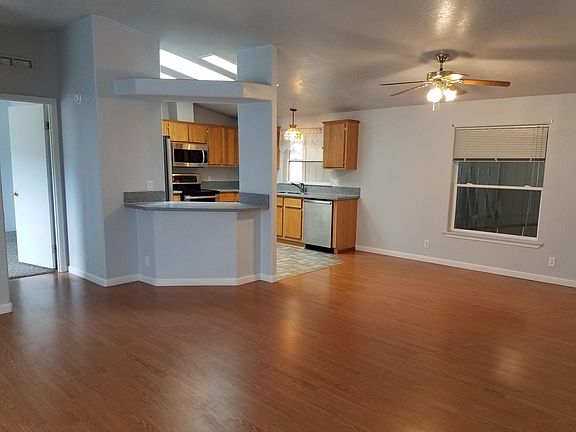Clean. laminate wood floors. New carpet in bedrooms. Includes refrigerator. Corian counter tops in kitchen. This is a 55 and older subdivision. Tenant responsible for Water, sewer, trash and electric.
